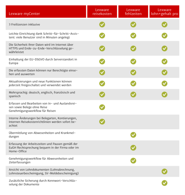 Lexware myCenter ist die smarte Lösung ist in folgenden Lexware reisekosten, Lexware lohn & gehalt und Lexware fehlzeiten